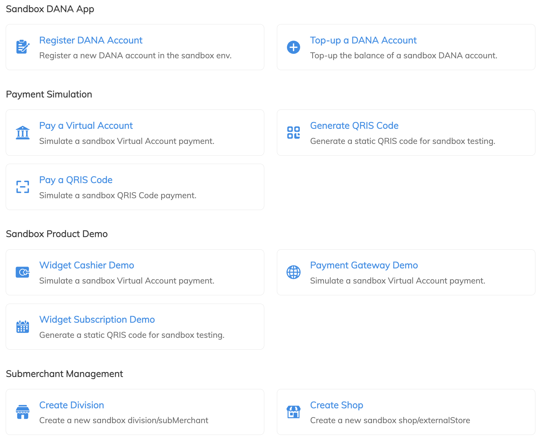 The Sandbox Helper Tools lets you simulate transactions and test your integration before going live. You can try different payment scenarios to check system behavior and make sure payment flows work properly, without using real funds.